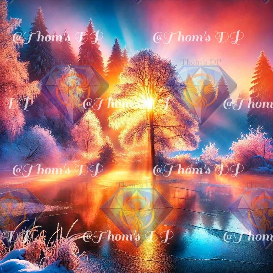 Dans un décor givré, un arbre majestueux s’embrase de lumière au lever du soleil. Ses branches couvertes de givre diffusent des éclats dorés et roses, reflétés sur la glace d’un lac calme. Autour, la forêt enneigée se pare de teintes féériques, transformant la scène en un véritable rêve hivernal. Un diamond painting poétique qui allie la magie de l’hiver et la chaleur de la lumière.
